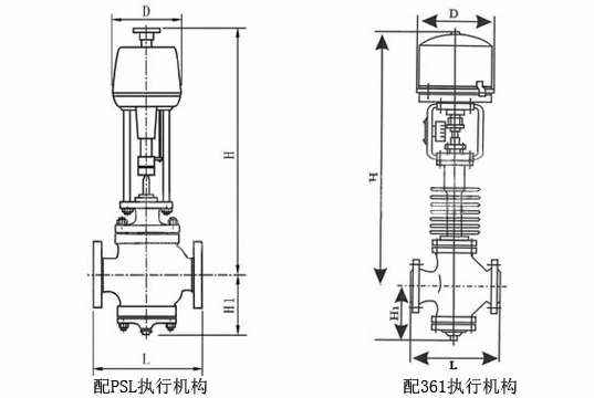 电子式电动双座调节阀 主要外形尺寸